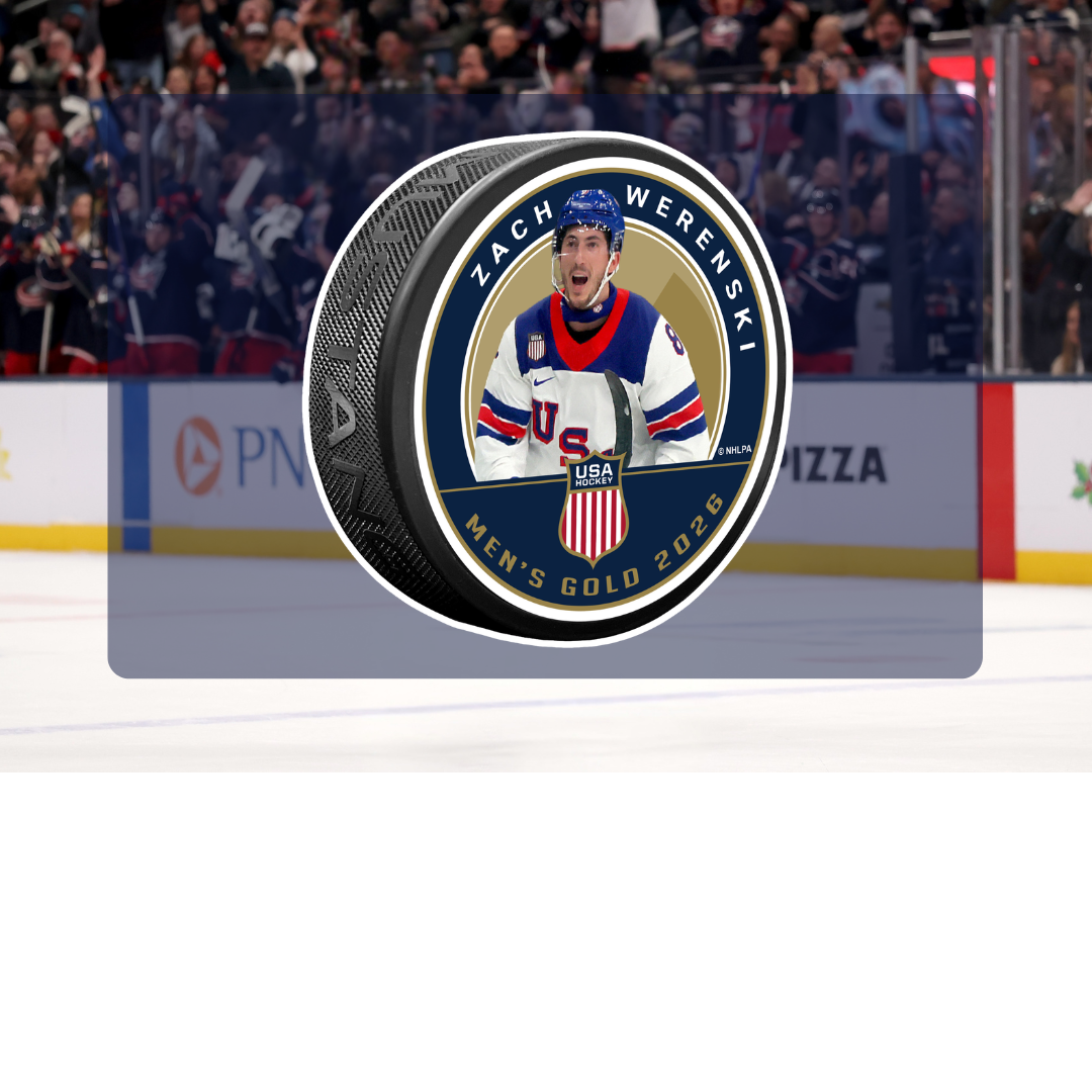 Celebrate Zach Werenski’s gold medal victory with this limited-edition commemorative puck. Featuring Team USA artwork and honoring an unforgettable championship moment, this collectible is a must-have for Blue Jackets fans. Available online now and in the main team store tonight — quantities are limited, so once they’re gone, they’re gone.