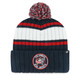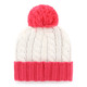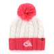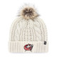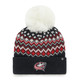 The Columbus Blue Jackets ladies' white woven pom knit is a stylish and elegant addition to any wardrobe. Featuring a subtle pink pom and cuff, along with our distinctive jersey logo, this knit offers a sleek and professional look. The tonal white color on the cuff adds a refined touch to the overall design, making it a versatile piece that can be worn in many settings.