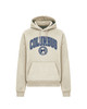 The Columbus Blue Jackets hoodie is crafted from heavy weight tan cotton, boasting a bold and professional look. The piece boasts an arched text reading "Columbus" above the prominent third jersey cannon logo, situated on the chest.